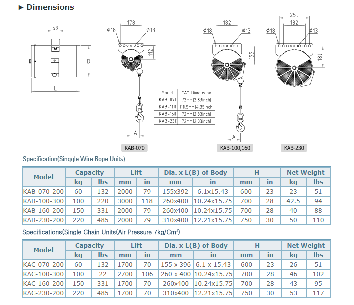 KHC氣動平衡器(吊) KAB-070-200