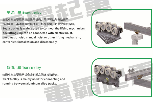 4、含滾輪裝置,小車可實(shí)現(xiàn)在雙向承載的同時(shí),保持良好的抗偏心能力,確保提升裝置準(zhǔn)確定位;